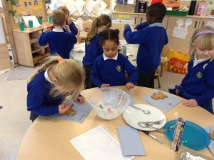 On Tuesday 20th May Reception had a design and technology parent activity that involved decorating the previously baked chocolate chip cookies. The children worked hard and took their time to plan and design their cookies – linking with World Bee Day. The children used colours in their design that they knew we had as food colouring, to make it easier to copy when decorating their cookies.