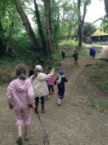 Everyone had a great time exploring the large woodland area, using gross motor skills to climb up the slopes and walk down them carefully.