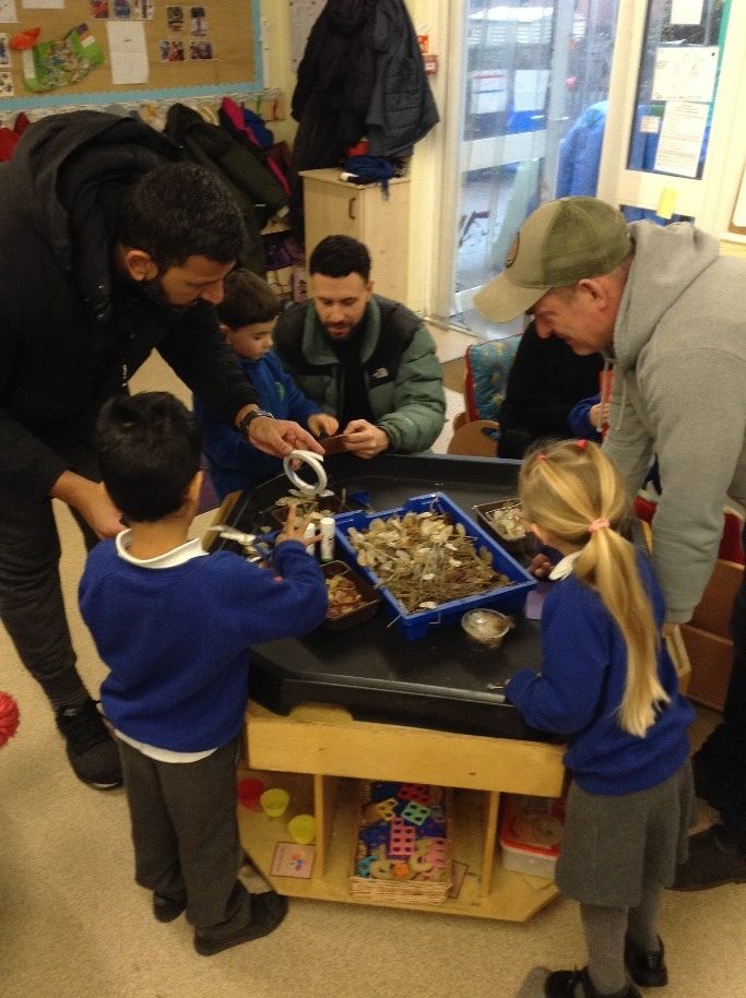 Parents and carers joined the class for two fun, hands-on creative activities using recycled and sustainable natural materials which the children have started to become familiar with as part of Forest School sessions.