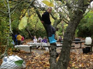 When we reach the apple tree circle at the far side of the field, the children then all join in an action song ‘Kelele’ practising actions to move to when we feel cold.