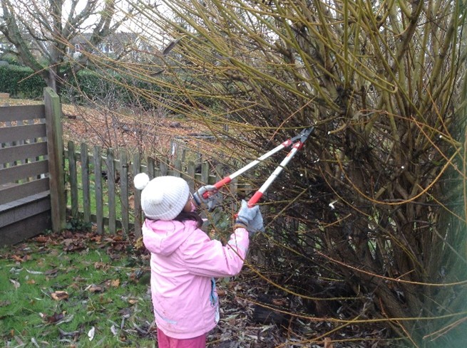 In woodwork they are learning how to use a hand drill safely, loppers for cutting willow withies along with hammer and nails.
