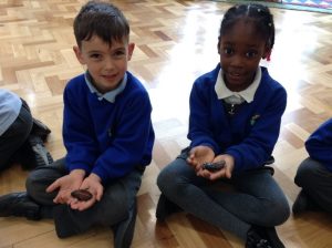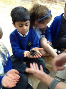 We each got to hold and stroke a Madagascan Hissing Cockroach, a Lesser Tenrec, a Tortoise, a Royal Python, a Kenyan Sand Boa, some Skinny Pigs, a Chuckwalla Lizard, a Chameleon, a Giant Katydid and a Curly Haired Tarantula. We learnt that the Lesser Tenrec had 7000 spikes and if one falls out, another grows in its place. The Chuckwalla Lizard likes to use its tail to whip other animals away when it feels threatened and has saggy skin it can puff out to protect itself. The Chameleon changes colour based on its mood, and it was colourful and bright when we held it, meaning it was happy. Lastly, the Skinny Pigs shake their bodies and almost vibrate to help keep themselves warm due to having no fur. Reception linked this to playing our physical games during forest school when it’s cold as that is how we keep warm.